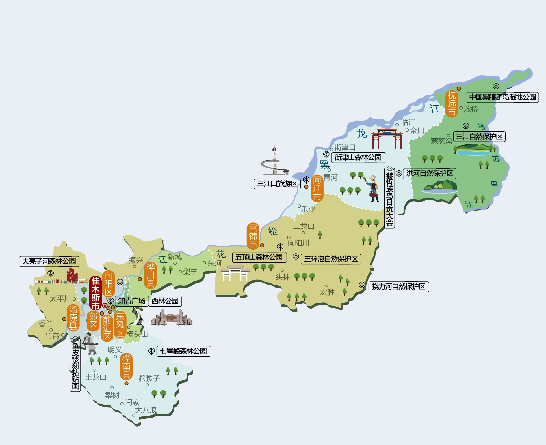 同江市 面積6229平方千米,人口173788,政府駐同江鎮(zhèn),下轄2個(gè)街道、6個(gè)鎮(zhèn)、4個(gè)鄉(xiāng)