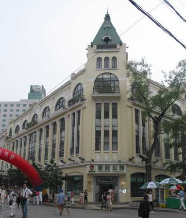 建于1909年,原為松浦洋行,是我市最大的巴洛克建筑代表作品,也是中央大街的標(biāo)致型建筑。其外觀華麗,造型生動(dòng),裝飾復(fù)雜,輪廓豐富。深紅色的閣樓、孟沙式的屋頂和形體多變的半圓穹窿創(chuàng)造了優(yōu)美的天際線,是市Ⅰ類保護(hù)建筑。