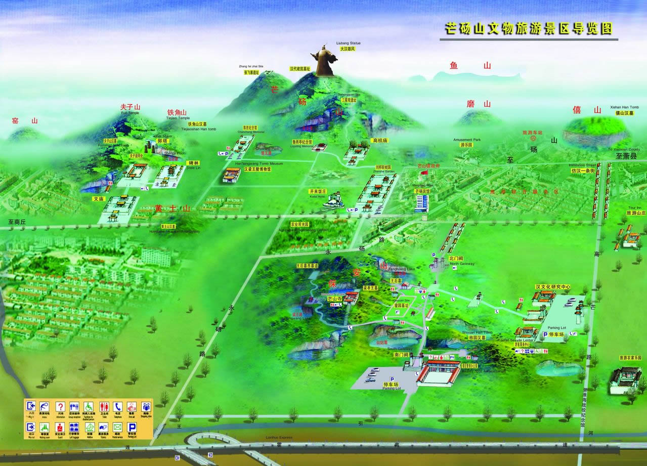 芒碭山旅游區(qū)位于芒山鎮(zhèn)區(qū),與G30連霍高速芒碭山站、S97濟祁高速永城北站毗鄰,距鄭徐高鐵永城北站僅4.5公里,并設有高鐵站至旅游區(qū)旅游專線。