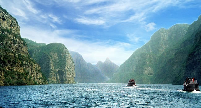 黃河三峽是小浪底與王屋山所孕育的精華,位于小浪底水庫(kù)大壩上游20公里處,總面積40平方公里, 是小浪底風(fēng)景區(qū)的精華所在。八里胡同位于黃河中下游最窄處,兩岸斷壁如削,中間河水奔涌,三條峽谷各具風(fēng)采:孤山峽鬼斧神工,千仞壁立;龍鳳峽盤(pán)龍走蛇,曲折迂回;大峪峽開(kāi)闊舒展,氣象萬(wàn)千。特別是九蹬蓮花棧,九蹬九級(jí),次第升高,望之若蓮花盛開(kāi),似出水芙蓉,號(hào)稱(chēng)“鯀山禹斧”。是我國(guó)北方少有的山水景觀,可以和長(zhǎng)江三峽媲美。 黃河小浪底風(fēng)景區(qū)是河南省以黃河中下游水利樞紐工程、峽谷河流為主要特色,體現(xiàn)黃河歷史文化和自然風(fēng)光的大型山岳湖泊型風(fēng)景區(qū),是開(kāi)展觀光、休閑、度假旅游的最佳場(chǎng)所。