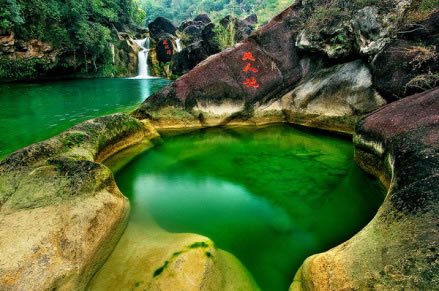 美人谷由一系列的深潭、瀑布、奇石、幽洞組成,是一個(gè)以山水為主的峽谷型生態(tài)休閑游覽區(qū),特別是由數(shù)十個(gè)氣勢(shì)磅礴的瀑布組成的瀑布群,成為華中地區(qū)的奇觀(guān)。