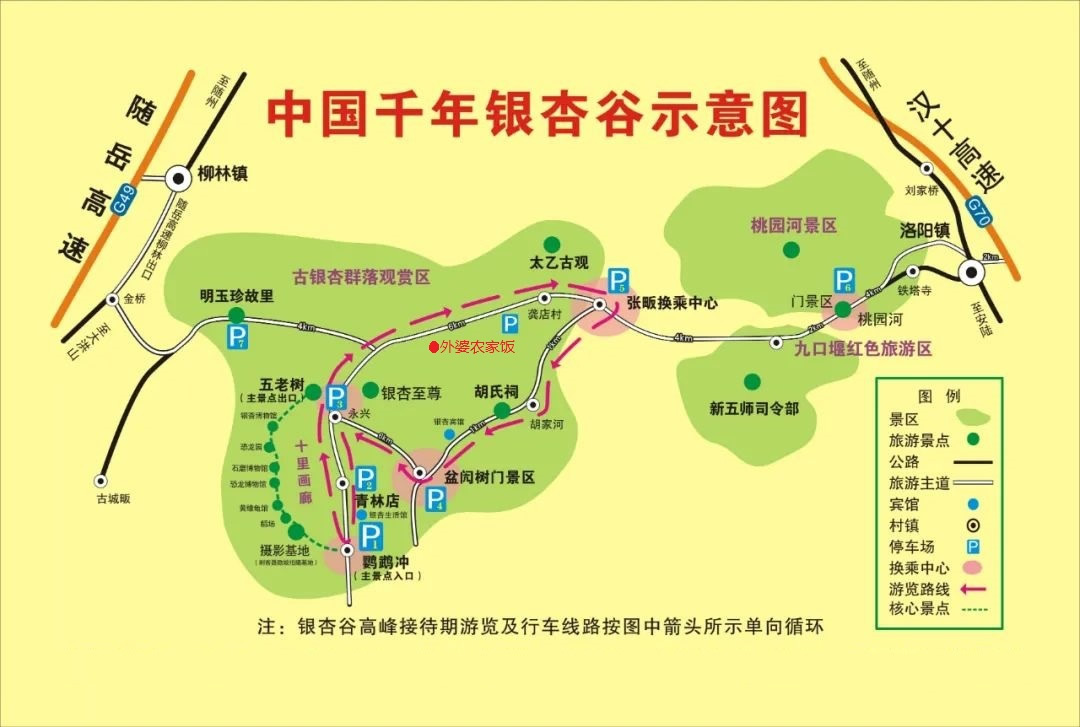 a.銀杏谷每天早上7:30 發(fā)往隨州汽車站的班車,當天下午14:30再從銀杏谷返隨州,票價12元。