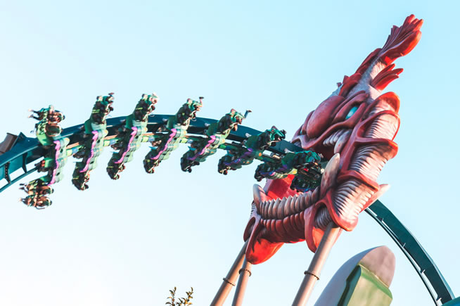 美好時(shí)光版的過(guò)山車(chē)非時(shí)光飛車(chē)莫屬,翻轉(zhuǎn)俯沖夠勁卻能穩(wěn)穩(wěn)的飛馳,墜落感在耳邊呼嘯,刺激感被歡樂(lè)的氣氛?qǐng)F(tuán)團(tuán)包圍。