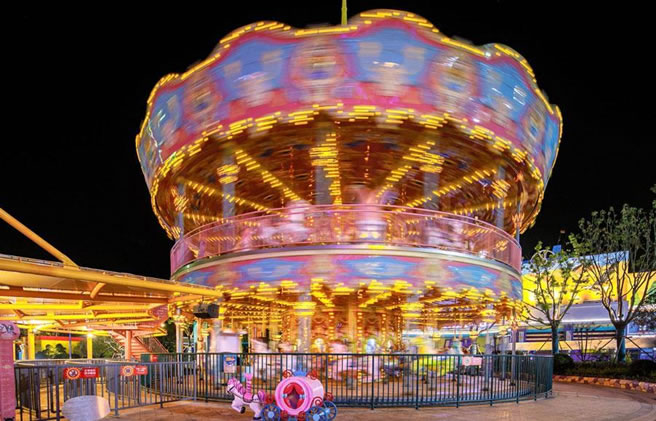 旋轉(zhuǎn)木馬:騎著木馬,伴隨著音樂(lè)奔騰旋轉(zhuǎn)。讓理性暫時(shí)逃離大腦皮層,腦海里的白馬躍然而上,腳踏祥云和春風(fēng)。