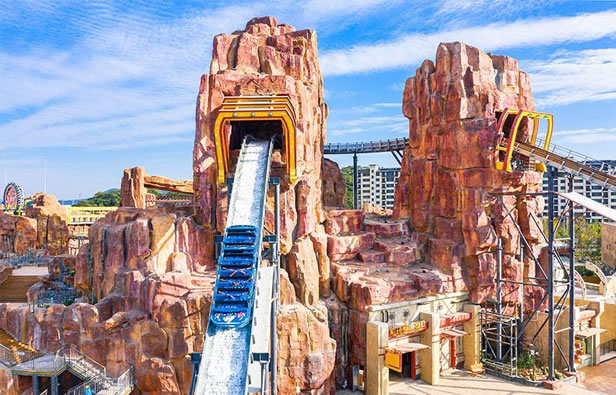 激流勇進(jìn):從26.8米的高空順流而下,巨浪翻騰,濺起水花,感受乘風(fēng)破浪。