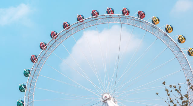 摩天輪:格子間里藏著少年草莓味的心事,看城市在眼前一點(diǎn)點(diǎn)展開(kāi)又收攏。棲霞山上堆滿(mǎn)的豪華云彩,像一幕壯麗的歌劇,足夠你在小格子里,拼卻出粉色的幻夢(mèng)。