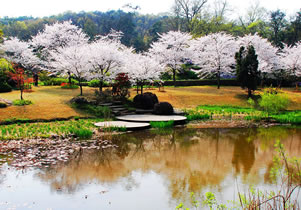 櫻花谷位于黿頭渚景區(qū)鹿頂山北麓,與中日櫻花友誼林毗鄰,又融為一體,占地20萬平方米,植有68個(gè)品種的櫻花3萬余株,是中國最大的櫻花專類園。櫻花谷建有賞櫻樓、躡云閣、繁英軒、簇春橋等建筑。