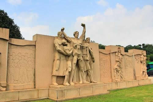位于雨花臺(tái)北殉難處,高10.3米、寬14.2米,由179塊花崗巖拼裝而成,再現(xiàn)了革命烈士就義時(shí)的英勇形象。