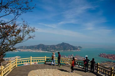 海天一覽觀景臺(tái),建于山崖頂上。依山面海,凌空壯觀,氣勢恢宏,與懸空棧道、懸索橋、云中漫步廊橋相連,總長1180米,直通二桅尖山峰。游客在此,極目海州灣,一覽港島城,山海奇觀,盡收眼底,令人心曠神怡,流連忘返。有詩贊道:“山居有大觀,圖畫入眼簾。曠目千里遠(yuǎn),怡心數(shù)縷煙。島峰浮霧海,帆影接云天。海上長虹落,銀鷗舞蹁躚”。