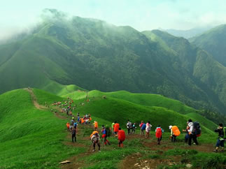 武功山的高山草甸海拔之高,面積之廣在世界同緯度名山中都是絕無僅有的。10萬畝草甸綿綿于海拔1600多米的高山之巔,穿云入霧,春夏綠油油,秋季金燦燦,冬天白皚皚,游人無需遠(yuǎn)赴邊陲,便可領(lǐng)略北國風(fēng)光,真可謂“天上草原、人間仙境、北國風(fēng)光、綠色家園”,被專家稱為“奇山伴草甸,天下一絕”。