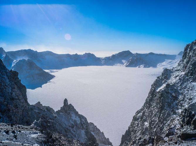 長(zhǎng)白山天池是中國(guó)境內(nèi)保存最為完整的新生代多成因復(fù)合火山,天池在宋朝以后多有噴發(fā),清光緒三十四年(1908年)起,劉建封登上白云山,為天池十六峰命名,探明鴨綠、松花、圖們?nèi)戳。天池周(chē)鹕娇诒诙盖停⑿纬墒畮鬃h(huán)狀山山峰,海拔均在2500米以上,長(zhǎng)白山天池也是松花江、鴨綠江以及圖們江的發(fā)源地,素有“三江之源”的雅稱(chēng)。