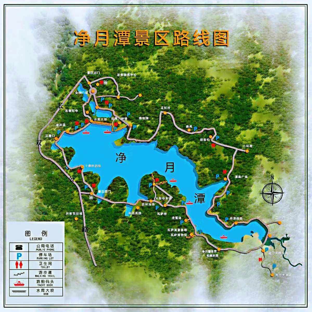 凈月潭是在1934年由人工修建的第一座為長(zhǎng)春市城區(qū)供水的水源地,在淪陷時(shí)期稱”水源地“或”貯水池“。凈月潭的名字是由”偽滿洲國(guó)總理大臣“鄭孝胥的二兒子,時(shí)任”偽滿洲國(guó)國(guó)都建設(shè)局局長(zhǎng)“的鄭禹所起。景區(qū)內(nèi)的森林為人工建造,含有30個(gè)樹(shù)種的完整森林生態(tài)體系,得天獨(dú)厚的區(qū)位優(yōu)勢(shì),使之成為“喧囂都市中的一塊凈土”,有“亞洲第一大人工林!、“綠海明珠”、“都市氧吧”之美譽(yù),是長(zhǎng)春市的生態(tài)綠核和城市名片。