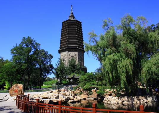 遼陽白塔,位于遼寧省遼陽市站前街道白塔公園內(nèi)。因塔檐間立壁和塔腰八面均涂有白堊,故稱白塔。建于遼朝時(shí)期。