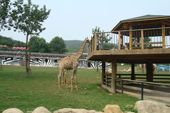 野生放養(yǎng)園的動(dòng)物全在外邊放養(yǎng),游客可以乘坐觀光電平車游覽,或者步行觀賞。依次經(jīng)過的是草食動(dòng)物園、熊園、虎園、獅園等園區(qū)。還有那些在林間的水潭邊跳躍的小鹿,悠閑地散步的長頸鹿。非洲野狗,又如三色犬,體形很小,只有一米高,但卻兇猛異常,可以捕食羚羊、斑馬等哺乳動(dòng)物,買只獵物投食,瘋狂的野狗爭相奪食,異常血腥。(建議步行游覽即可,時(shí)間約50分鐘)亞洲食草動(dòng)物區(qū)。有牦牛、駱駝、矮馬、白唇鹿、馬鹿、田鹿、梅花鹿、羊駝、犀牛等眾多動(dòng)物,它們和睦相處、互不侵犯各怡然自得。游客可以拿點(diǎn)青草樹葉之類的食物,和它們近距離相處喂食。