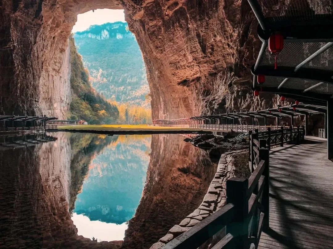 • 亮點(diǎn):洞內(nèi)狹窄處僅容一人通過,抬頭望天如一線,極具探險(xiǎn)趣味。