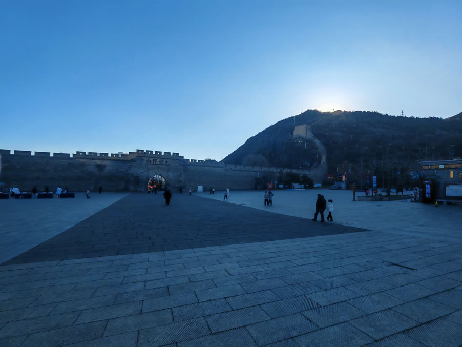 - 西境門廣場觀景臺廣角鏡頭框住長城。