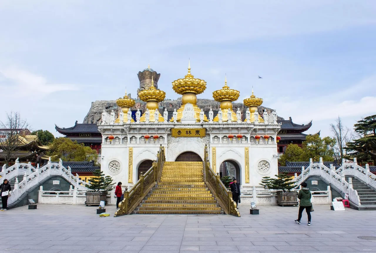 東林寺,位于上海市金山區(qū)朱涇鎮(zhèn)。其原名觀音堂,元至大元年(1308年),由僧侶妙因創(chuàng)建。元皇慶二年(1313年)改為東林禪寺。東林寺占地24.07畝,為浦南地區(qū)單體建筑面積最大的元、明、清建筑群,建筑風格獨特,寺廟主體建筑依著一座高大的仿假山建筑而建,形成山寺合一。寺廟的新建部分融合了現(xiàn)代設計元素,在保留傳統(tǒng)廟宇氣息的同時,展現(xiàn)出新穎獨特的景觀。尤其是寺廟中金碧輝煌的建筑和雕塑,展示出中國傳統(tǒng)工藝的精湛與華麗。分圓通寶殿、大雄寶殿、觀音閣、善財?shù)睢⑶Х痖T、鐘樓、鼓樓、金愿橋、五佛冠、金蓮池(景泰藍善財童子)等景點。