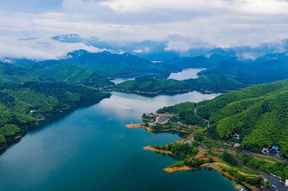 九龍湖風(fēng)景區(qū),位于浙江省寧波市鎮(zhèn)海區(qū)九龍湖鎮(zhèn)境內(nèi),原為慈溪縣(今慈城)河頭鄉(xiāng)河頭市,距慈溪老縣城(慈城)約15公里,距寧波市中心約20公里。十字路水庫,別名九龍湖,水庫位于達(dá)蓬山以南,處于姚江流域,水域面積3平方公里,始建于1977年,1979年建成,包含九龍湖水庫、小洞岙水庫、郎家坪水庫和三圣殿水庫四個(gè)水庫,是鎮(zhèn)海區(qū)飲用水源地,國家4A級(jí)旅游景區(qū)。湖周黛峰如眉,翠嶺逶迤;湖中碧波如鏡,嵐影倒懸。波光藍(lán)天一色,綠樹修竹相映,景色極為旖旎。湖北側(cè),九龍山偉岸挺拔,九個(gè)山頭和九條山脊并列一起,猶如九條臥龍伏地,綿亙數(shù)里,九龍山和九龍湖之名,皆藉此而來。時(shí)人有“九龍盤青山,松竹映碧波”的詩句,描述九龍山和九龍湖的景致。湖東北,是大蓬山,亦名達(dá)蓬山,海拔315米,山勢(shì)崢嶸,崖巖危突,登頂可眺望東海。