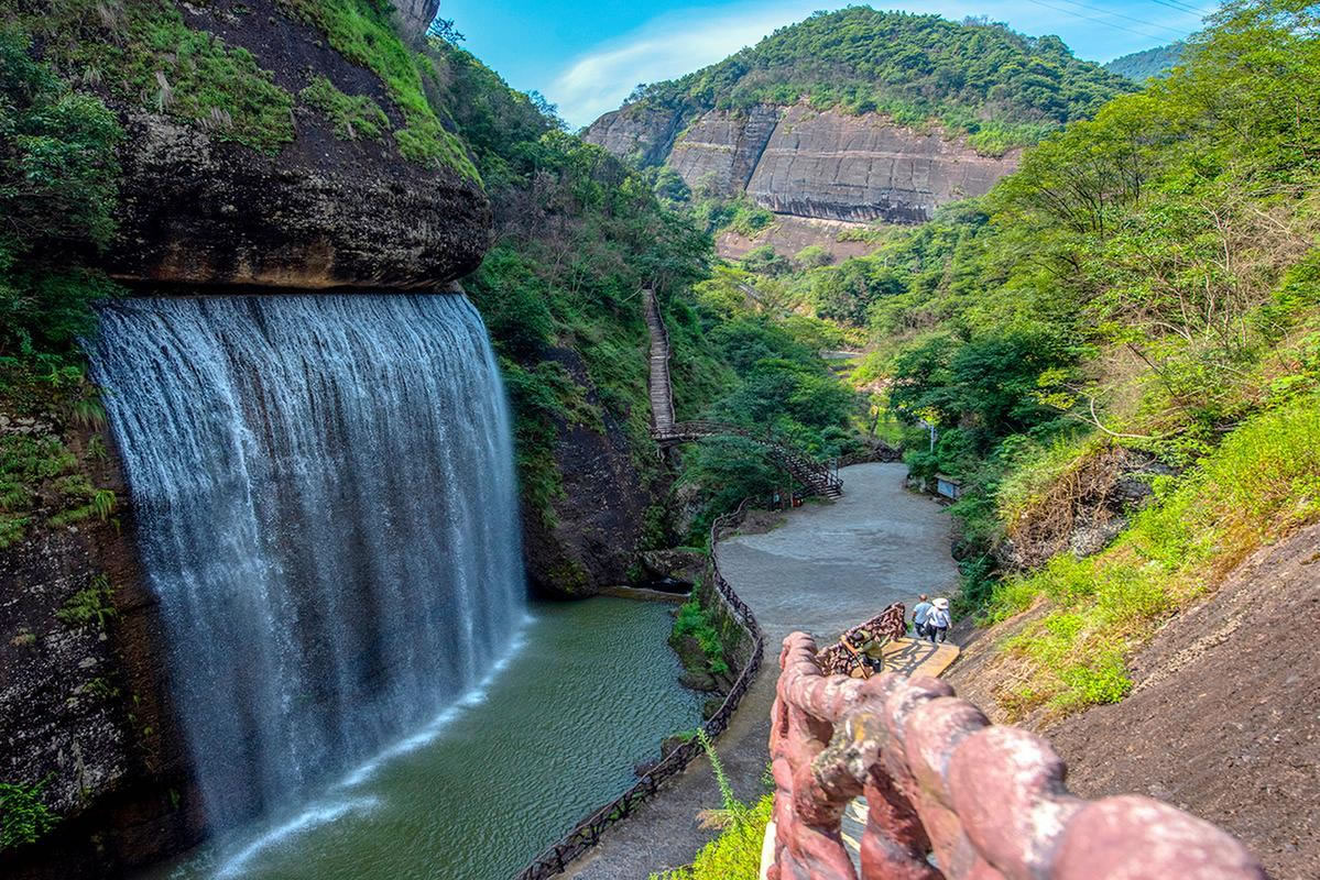 - 景區(qū)內(nèi)最壯觀的瀑布之一,落差達(dá)數(shù)十米,水流飛瀉而下,形成一道白色的水簾。