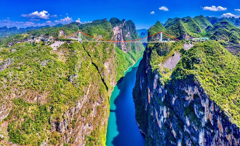 • 世界之最:橋面距江面高差280米,世界鐵路第一高橋,主跨236米居世界同類型橋梁之首。