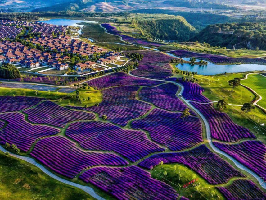 - 特色:百畝馬鞭草、繡球花、百合花田,設(shè)鋼琴藝術(shù)裝置、秋千等互動(dòng)設(shè)施。