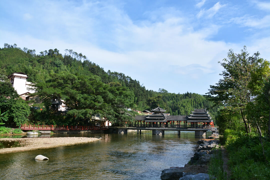 - 上午:游客中心→風(fēng)雨橋→瑤繡館體驗(yàn)→天鵝湖游船