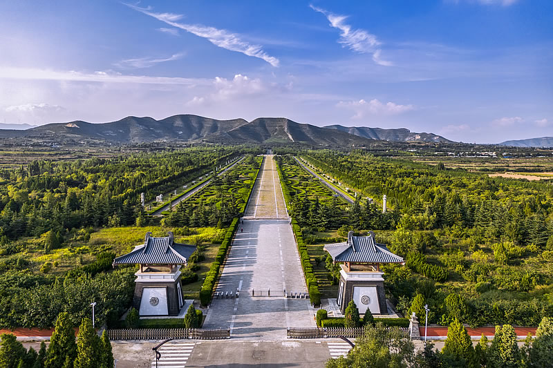 - 地理位置:陜西省渭南市蒲城縣西北豐山,唐睿宗李旦陵墓,全國重點(diǎn)文物保護(hù)單位、國家AAAA級(jí)景區(qū),以“石雕藝術(shù)寶庫”著稱,面積852萬平方米,神道寬110米、長625米,石刻群包括華表、翼馬、鴕鳥、翁仲等,氣勢恢宏。