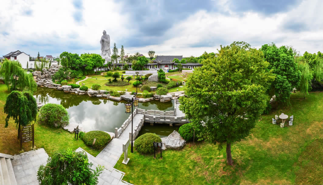 忠孝文化園位于江蘇省南通市通州區(qū)東社鎮(zhèn)鎮(zhèn)區(qū)北側500米,占地面積160畝,總投資3.2億元,分四期工程建設,由同濟大學設計為具有明末清初風格的江南園林式建筑。該園以陸鳳彬將軍祖宅為基礎建造,2008年11月竣工開園,是國內首個以"忠孝"為主題的人文景觀。園區(qū)主體建筑包含思苑樓、忠孝坊、中華柱、忠孝文化長廊及六角忠孝亭,陳列24忠24孝故事石刻、《孝經(jīng)》石刻長卷和唐至近現(xiàn)代硯臺50余方。園內矗立國內最高孔子石雕像,通高32米,由480余塊石質部件拼接而成,重約千噸,以唐代吳道子畫像為藍本雕刻。聚寶閣收藏四大偉人紅木雕像、百名將軍墨寶及趙樸初等書法家作品。該園免費對外開放,設有愛國主義教育展廳、國防教育展區(qū)及多功能影視廳,年均舉辦道德講堂、主題展演等教育活動百余場。配套服務設施包含水上餐廳、垂釣中心及可容納300人的宴會廳。