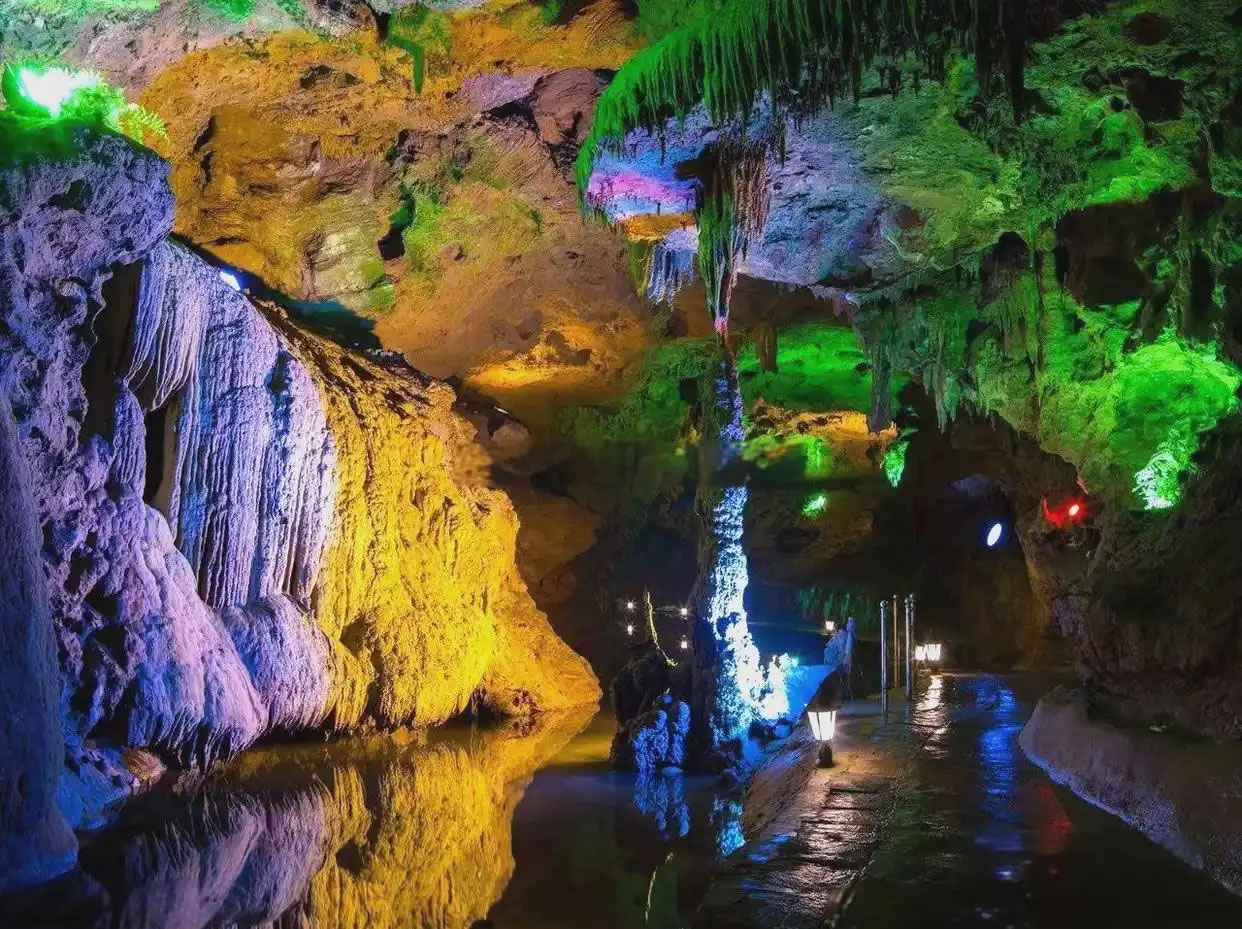 • 核心特色:四層溶洞體系、全長6公里的地下長河(明河1.5公里+暗河4.5公里)、恒溫18-19℃的洞穴環(huán)境、高空速滑(中國第一,落差100米)、卡丁車場、土風舞表演及篝火晚會,融合探險、休閑、文化體驗于一體。