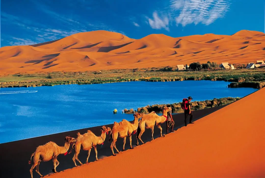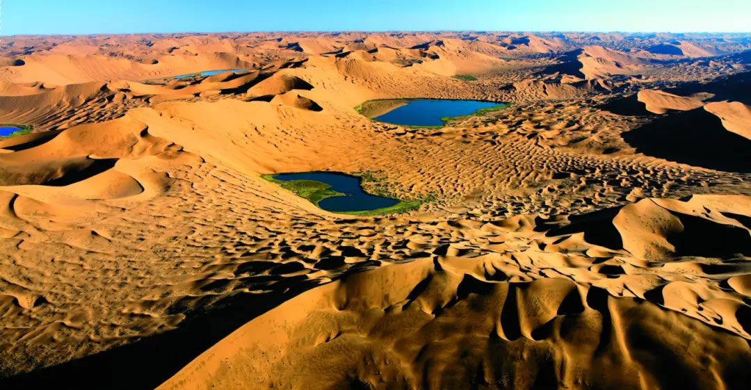 面積約4.43萬(wàn)平方千米,是中國(guó)第三大沙漠。流動(dòng)沙丘占全部沙漠面積的83%。中部有高大沙山,一般高200-300m,最高的達(dá)500m。高大沙山間的低地有144個(gè)內(nèi)陸小湖。巴丹吉林沙漠有“中國(guó)最美的沙漠”的美稱(chēng)。是阿拉善世界沙漠地質(zhì)公園的核心區(qū)域。