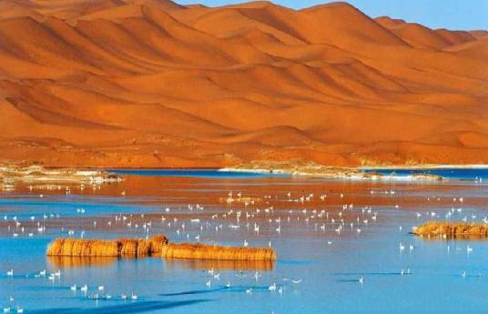 阿拉善騰格里沙漠天鵝湖風(fēng)景區(qū)位于內(nèi)蒙古自治區(qū)阿拉善左旗境內(nèi),是阿拉善沙漠世界地質(zhì)公園—騰格里園區(qū)的重要組成部分,距離盟、旗首府巴彥浩特鎮(zhèn)25公里,以“大漠天湖”美稱(chēng)享譽(yù)海外。