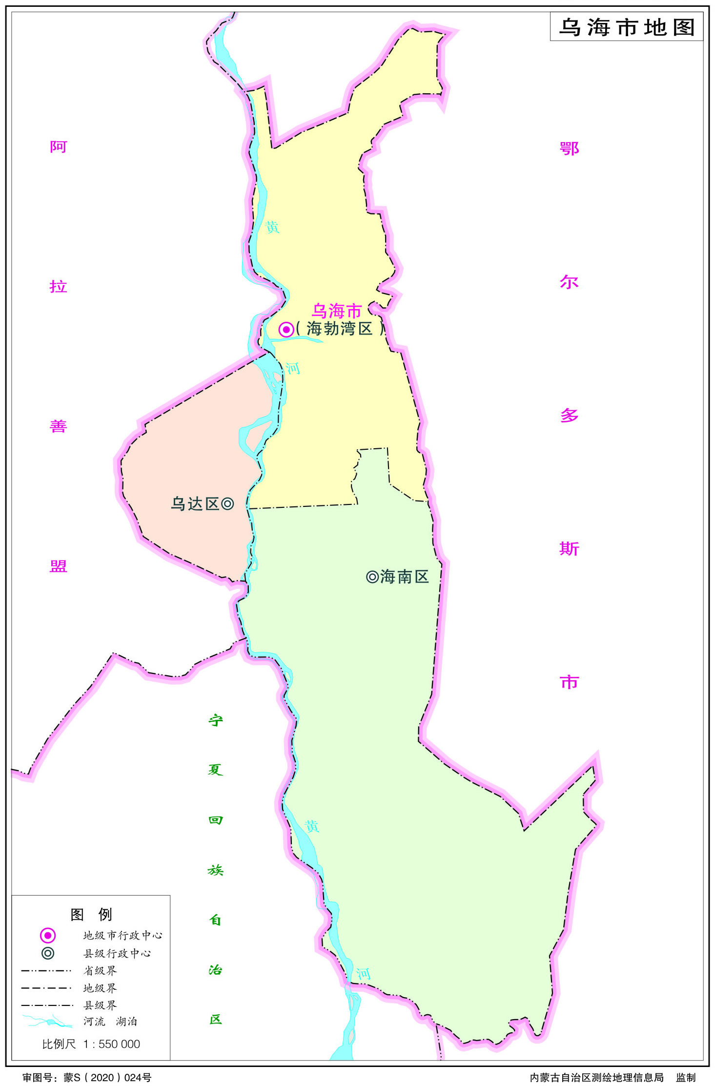 烏海市轄3個市轄區(qū):海勃灣區(qū)、烏達區(qū)、海南區(qū)