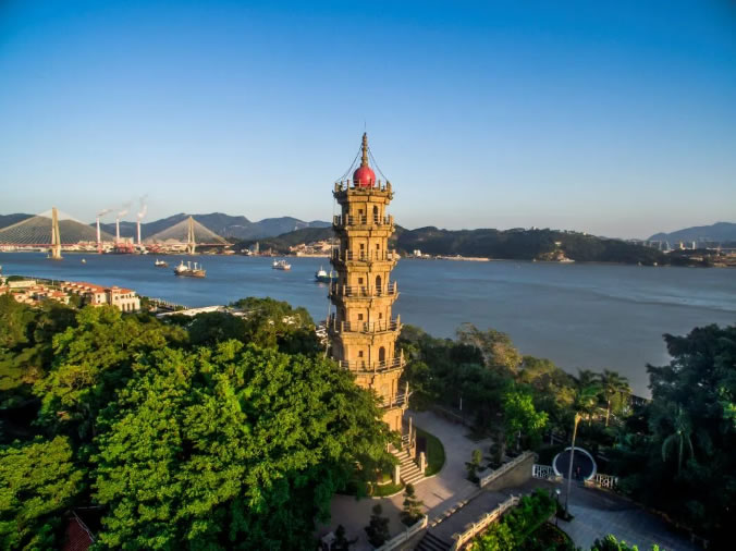 位于福州市馬尾區(qū)南部閩江之濱的羅星塔,是閩江門戶標(biāo)志。塔下是羅星塔公園,穿過(guò)公園入口處的牌樓,園內(nèi)四時(shí)花木繁茂,風(fēng)景宜人。江岸兩旁還有古炮臺(tái),可以看到當(dāng)年煙火彌漫的中法馬江海戰(zhàn)的古戰(zhàn)場(chǎng)。