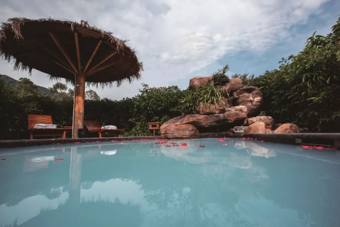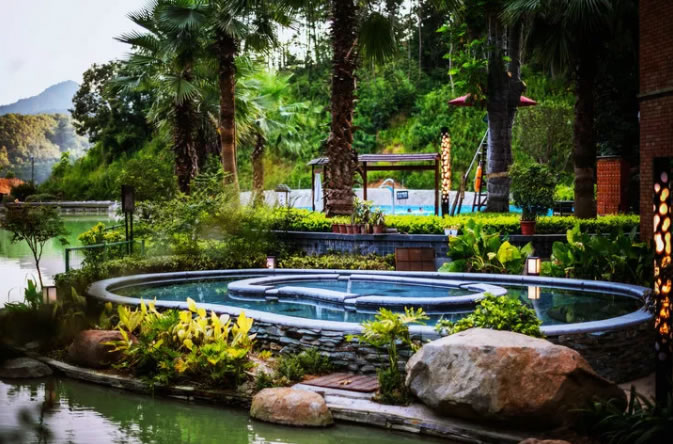 景區(qū)位于風(fēng)景秀麗的桂湖森林公園區(qū),酒店主體包括30多種不同功能和種類的溫泉泡池、80間精品客套房、濃郁南洋格調(diào)的芭提雅餐廳、豪華中餐廂房及設(shè)備齊全的多功能會(huì)議室。在這個(gè)處處散發(fā)著大自然幽香的溫泉世界里,滿山蒼翠的清新景致,讓身體和心靈經(jīng)歷一次全新的溫泉體驗(yàn)。