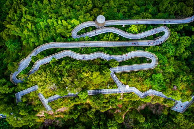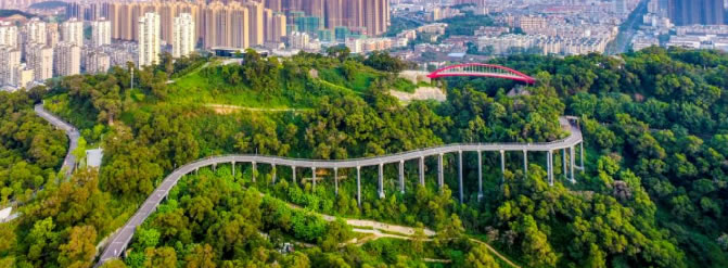環(huán)山而建、山中看城的城市森林步道也開(kāi)放了,走上這螺旋而上的步道,便恍若穿行在森林中,沿途林木環(huán)抱,身在其中,就仿佛是在一幅畫中流轉(zhuǎn)。