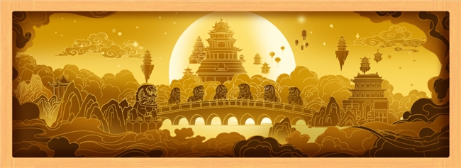 盧溝曉月紙雕燈:紙雕燈圖案,靈感來(lái)自“盧溝曉月”燈組,曙光未露、明月映照下,盧溝橋的美景盡收眼底。行走在游園燈會(huì)中,打一盞紙雕燈,氛圍感滿滿~