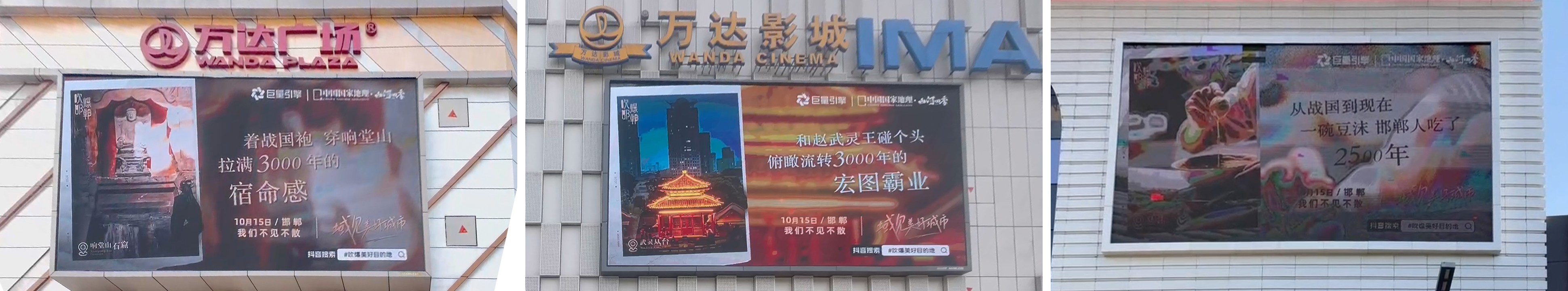 不僅如此,巨量引擎更聯(lián)合中國國家地理•山河四季,在各地萬達(dá)大屏上演了一場邯鄲城市大片攝影展,讓邯鄲的寶藏美景通過鏡頭、照片走出去。