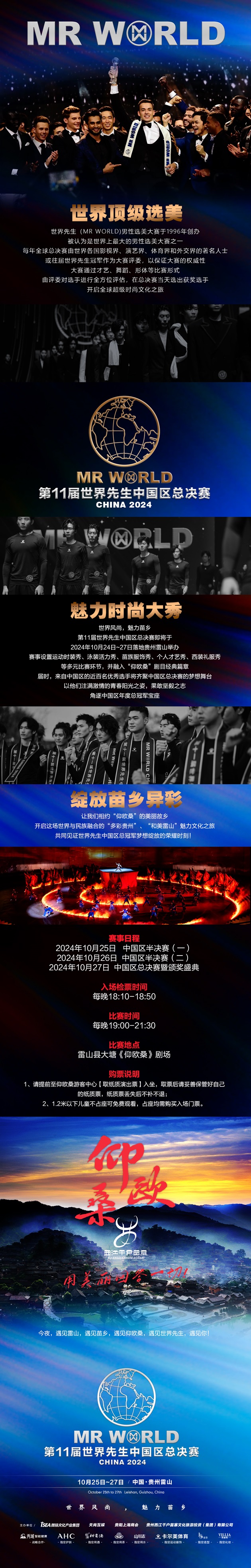讓我們共同期待 10 月 24 日至 27 日的到來,一起見證“世界先生”們在“多彩貴州”、“和美雷山”的精彩表現(xiàn),一起遇見美麗的“仰歐桑”,共同感受這場世界與民族融合的魅力文化盛宴!
