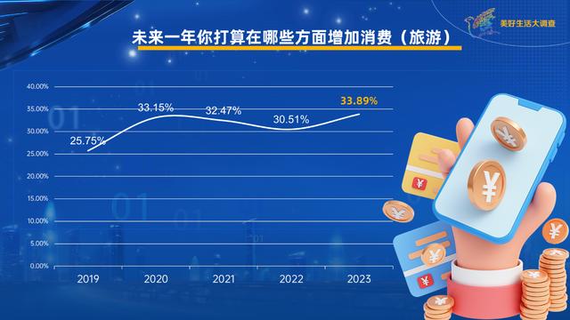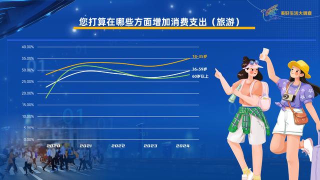 《美好生活大調(diào)查》發(fā)現(xiàn),2024年在國人消費意愿榜上,旅游又一次站到了榜首的位置。這已經(jīng)是5年來,旅游第三次站在消費意愿榜的第一名,今年更是達到了5年來的最高點。