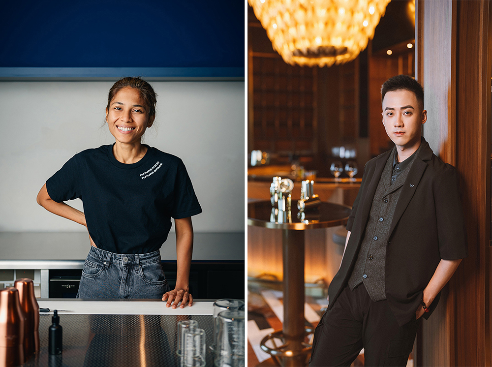 Sasha (左) 是Fura 的合伙人及調(diào)酒師,她一向追尋以創(chuàng)新的方式融合各種食材,制作出風(fēng)味獨(dú)特又環(huán)保的飲品。 澳門新濠影匯W酒店首席調(diào)酒師Samio (右) 獨(dú)具匠心,致力于以不同構(gòu)思設(shè)計出令人驚嘆的作品,期望每一杯飲品都能為賓客帶來難忘的體驗(yàn)。