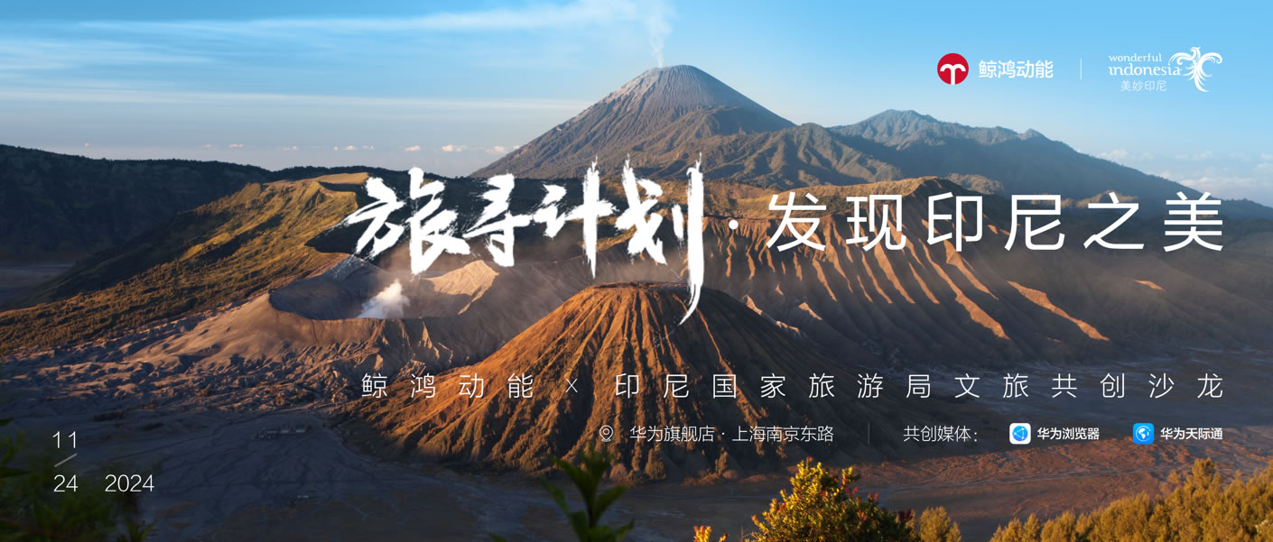 11月24日,鯨鴻動能攜手印尼國家旅游局,在華為旗艦店·上海南京東路舉辦了「旅尋計(jì)劃▪發(fā)現(xiàn)印尼之美」文旅共創(chuàng)沙龍活動。活動現(xiàn)場人潮涌動,線上數(shù)百萬消費(fèi)者同步感受活動盛況。