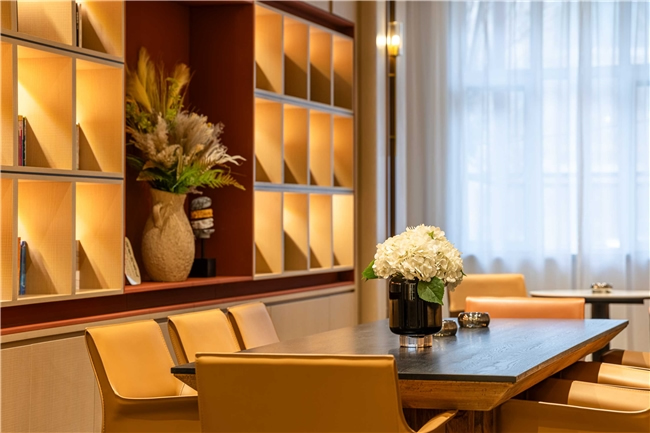 酒店共設(shè)125間豪華客房,涵蓋高級房、行政房、親子房及行政套房等多種房型。設(shè)計以“海棠紅”與“寶石紅”為主色調(diào),融合現(xiàn)代雅致與地域文化元素,營造淡泊素雅的藝術(shù)氛圍?头颗鋫渲悄苷Z音助手、智能門鎖、燈光控制系統(tǒng)等科技設(shè)施,打造沉浸式智慧旅居空間。公共區(qū)域還設(shè)有大堂吧、書吧、茶室、中餐廳、會議室、健身房、洗衣房等配套設(shè)施,滿足賓客的多元需求。