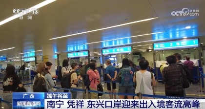 友誼關(guān)出入境邊防檢查站執(zhí)勤二隊隊長 史波:端午假期期間,友誼關(guān)口岸日均查驗出入境旅客預(yù)計將超過8000人次。對此,我們提前發(fā)布流量高峰預(yù)判信息,并根據(jù)口岸實時流量靈活調(diào)配警力,適時啟動中越聯(lián)動驗放機制,全力保障口岸通關(guān)各流程順暢、高效。