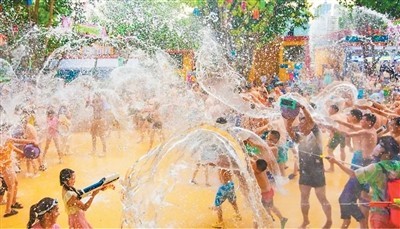 娛水是夏日避暑游的重要內(nèi)容。多地水公園緊扣年輕游客需求,創(chuàng)新娛水體驗(yàn),從原汁原味的薩瓦迪卡電音派對(duì)、泰式潑水大巡游到椰林集市、泰式美食街和“泰酷辣”NPC互動(dòng),沉浸式還原東南亞度假風(fēng)情,滿足年輕游客對(duì)異域文化與社交打卡的雙重需求。武漢瑪雅海灘水公園的音樂潑水狂歡、成都瑪雅海灘水公園的“泰POP親子潑水盛典”將東南亞風(fēng)情與水上娛樂結(jié)合。南京瑪雅海灘水公園的“泰式蹦迪”、落日音樂會(huì)和重慶瑪雅海灘水公園的“三大潑水玩法”,營造了體驗(yàn)新場(chǎng)景,受到游客喜愛。