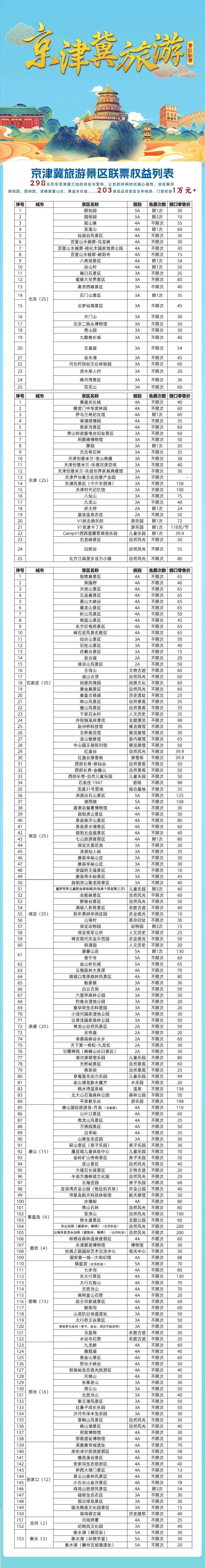 首批入選聯(lián)票的景區(qū)中,北京、天津各25家,河北153家。其中,石家莊景區(qū)涵蓋正定古城、隆興寺、趙州橋等文化地標(biāo),以及西部長青、漫山花溪谷等自然休閑勝地,為游客提供多樣化選擇。游客線上可通過“文創(chuàng)行”“全冀游”“樂游京津冀一碼通”等平臺購買。