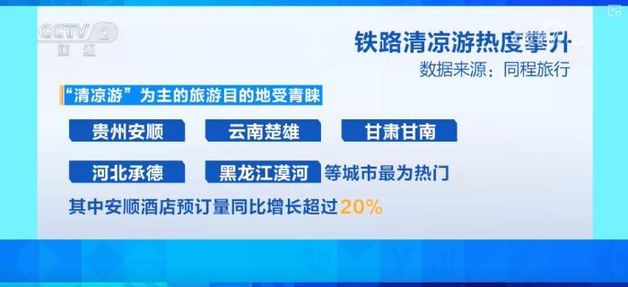 旅游平臺數(shù)據(jù)顯示,“清涼游”為主的旅游目的地受青睞。貴州安順、云南楚雄、甘肅甘南、河北承德、黑龍江漠河等城市最為熱門,其中安順酒店預(yù)訂量同比增長超過20%。