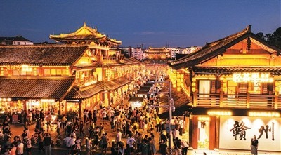 今年夏季,江西省贛州市推動(dòng)消費(fèi)場(chǎng)景創(chuàng)新,借助系列賽事活動(dòng)打造“票根經(jīng)濟(jì)”,吸引八方游客前來旅游觀光,帶動(dòng)消費(fèi)市場(chǎng)持續(xù)火熱。圖為贛州市章貢區(qū)江南宋城歷史文化街區(qū)。