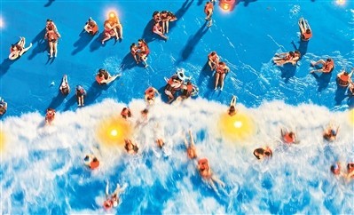 不久前,在江蘇南通森林野生動(dòng)物園,南通“蘇超”球迷專屬夜公園免費(fèi)暢玩吸引了眾多“蘇超”球迷。凡持有江蘇城市足球聯(lián)賽任意場(chǎng)次票根的球迷,均可享受一次夜公園免票入園。圖為球迷、游客在專屬夜公園水上樂園戲水。