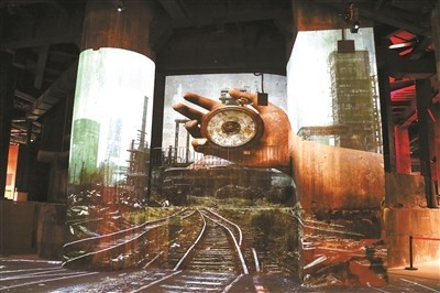走進三高爐,以爐芯為載體放映的數(shù)字片《致敬鋼鐵》,呈現(xiàn)出獨特的觀影效果。爐芯、墻壁、地面,瞬間變?yōu)槠聊,觀眾可360度沉浸在鋼鐵故事中,了解北京乃至中國鋼鐵工業(yè)發(fā)展有重要貢獻的“功勛高爐”的歷史。