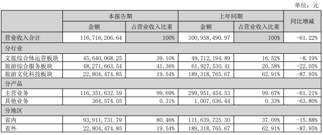 財(cái)報(bào)顯示,最近幾年,公司文旅科技板塊的營(yíng)收占比均在50%以上,是公司的主要驅(qū)動(dòng)力,然而今年上半年,公司文旅科技板塊營(yíng)收僅有2280.45萬元,占比19.54%,縮水嚴(yán)重。